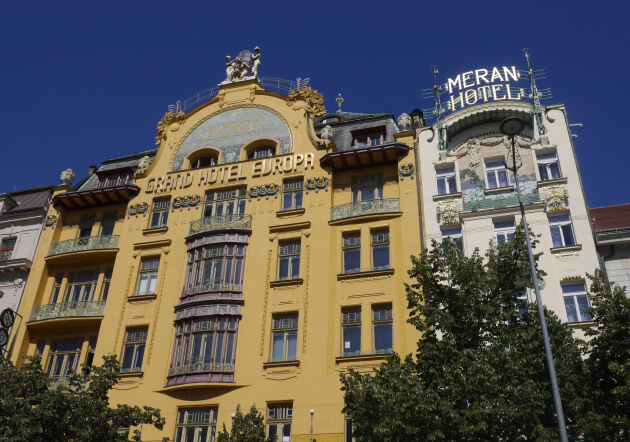 Façades Art Nouveau du Grand Hôtel Evropa et de l'Hôtel Meran